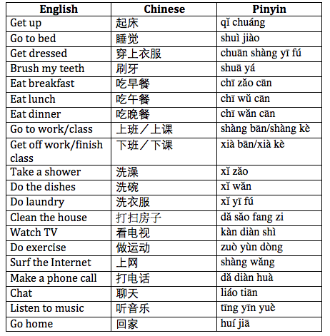 A good way to self-study Chinese is to practice talking about/writing about your day. We’ve covered how to tell time in Chinese and even some advanced time telling in past posts, so make sure you check those out if you haven’t already. Once you’ve brushed up on your time-telling skills, try to talk about some of your daily activities and what time you do them. To get you started, here are 20 Chinese words/phrases related to everyday activities: